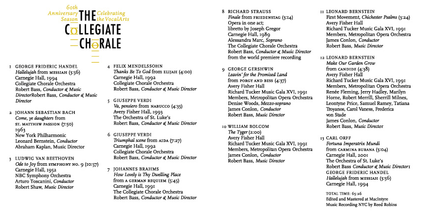 Collegiate Chorale: 60th Anniversary Season CD Cover and Insert