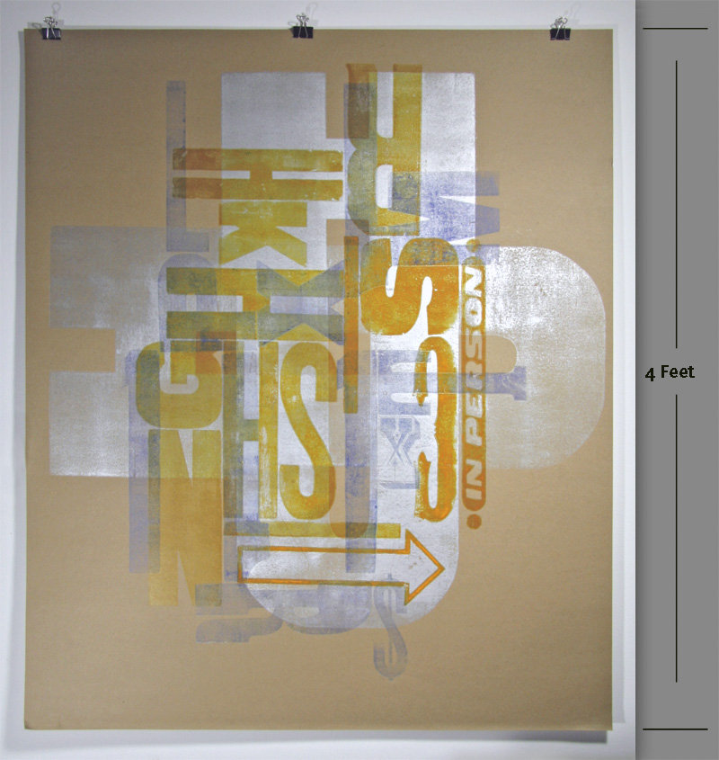 This is a group of posters that I printed at Yee Haw Industries in Knoxville, Tennessee. The Posters were collaboratively printed with Tyler Galloway and Kyle Chalk. The posters are four feet high.