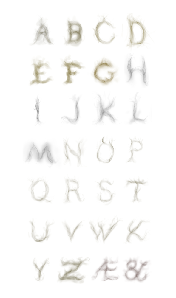 This is an experimental typeface based on the ephemeral marks left by a smoking candle.